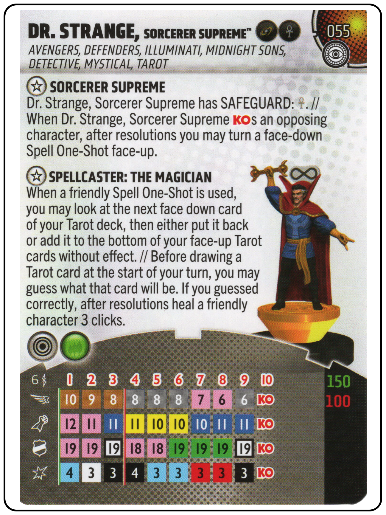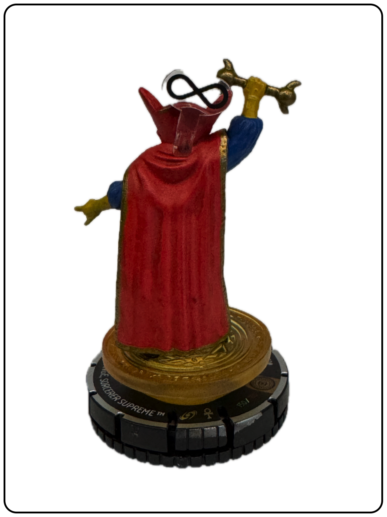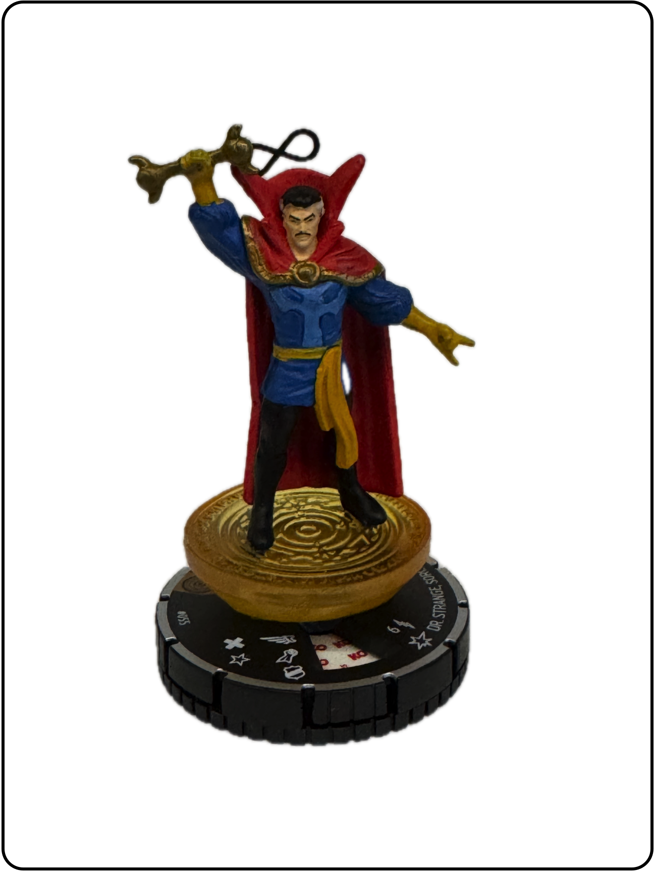 Name: Dr. Strange, Sorcerer Supreme Number: 055 Rarity: Rare Set Name: Strange Tales Type: Figure & Character Card Year: 2025 Catalog Number: 07:02:00:0001:K10 Main Category: Games Sub Category: HeroClix Secondary Category: None Details: This is probably the rarest Dr. Strange figure from the 2025 Strange Tales set. It features Dr. Strange holding the Wand of Watoomb above his right should and an infinity symbol above his head. He is standing on a clear yellow mandala symbol on a raised platform. Refer to pictures of the Character Card for stats.