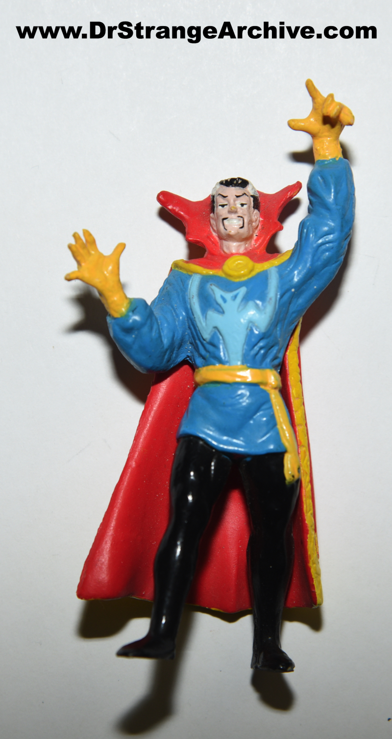 Item: Cake Topper Date: 1991 Type: Misc Size: 2 x 4 Company: Unk Description: This is a four inch tall Dr. Strange cake topper featuring a classic costume.