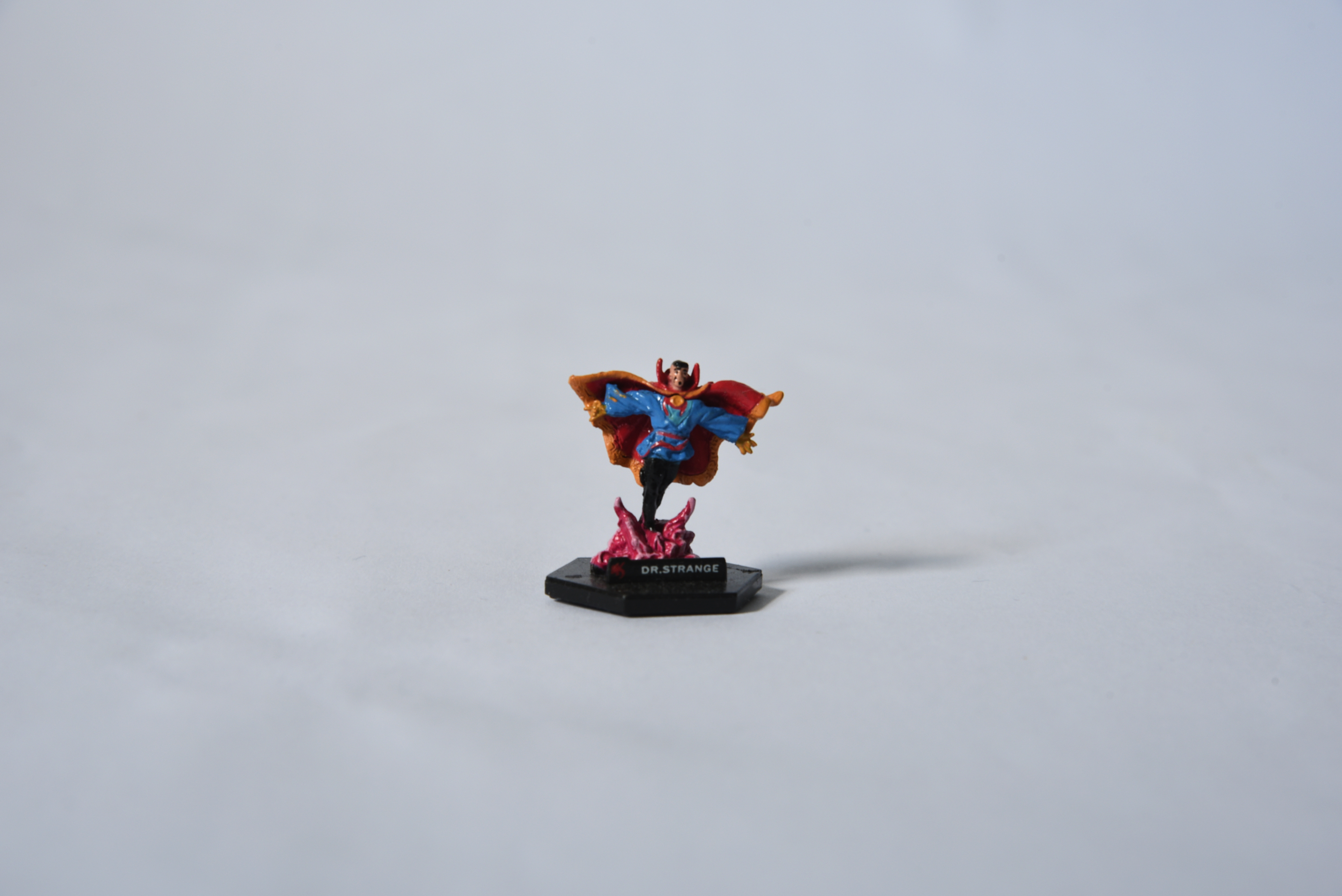 Item: Dr. Strange Game Piece Date: Unk Type: Game Piece Size: 1 x 1 Company: Playmates Toys Description: This is a very small game figure. It is like a very small HeroClix piece. The stats are on the bottom of the base.