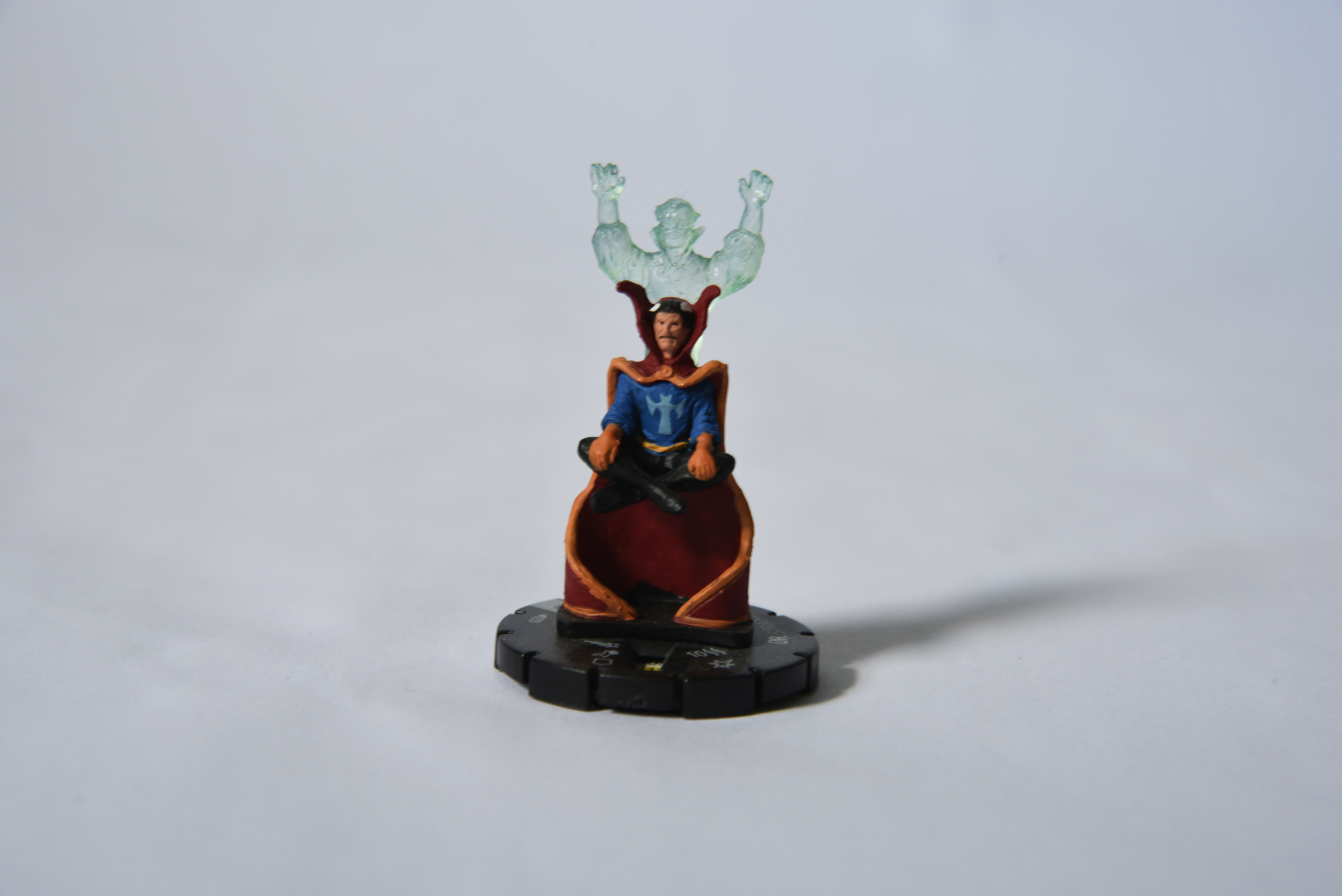 Item: Dr. Strange #033 HeroClix Date: 2008 Type: Game Piece Size: 2 1/4 x 1 3/8 Company: Wizk!ds Description: This is a great Dr. Strange HeroClix piece for the Secret Invasion series from 2008. It depicts the Doctor in a levitated seated position with his astral form emerging from his body.