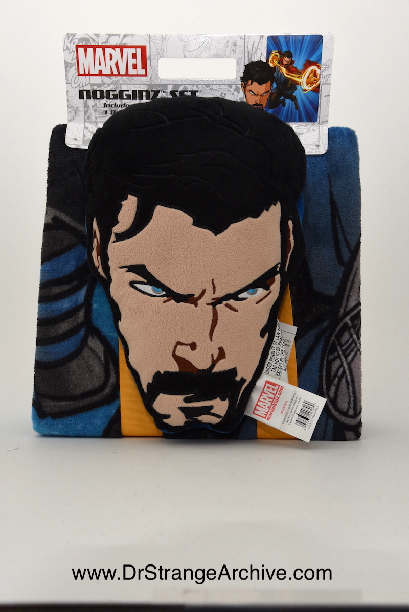 Item: Doctor Strange Nogginz Set Date: 2018 Type: Blanket Size: 12" x 12" Company: Jay Franco & Sons, Inc. Description: This is a pillow and blanket set with Doctor Strange. The pillow is Dr. Strange's head. The blanket measures 60" x 90"