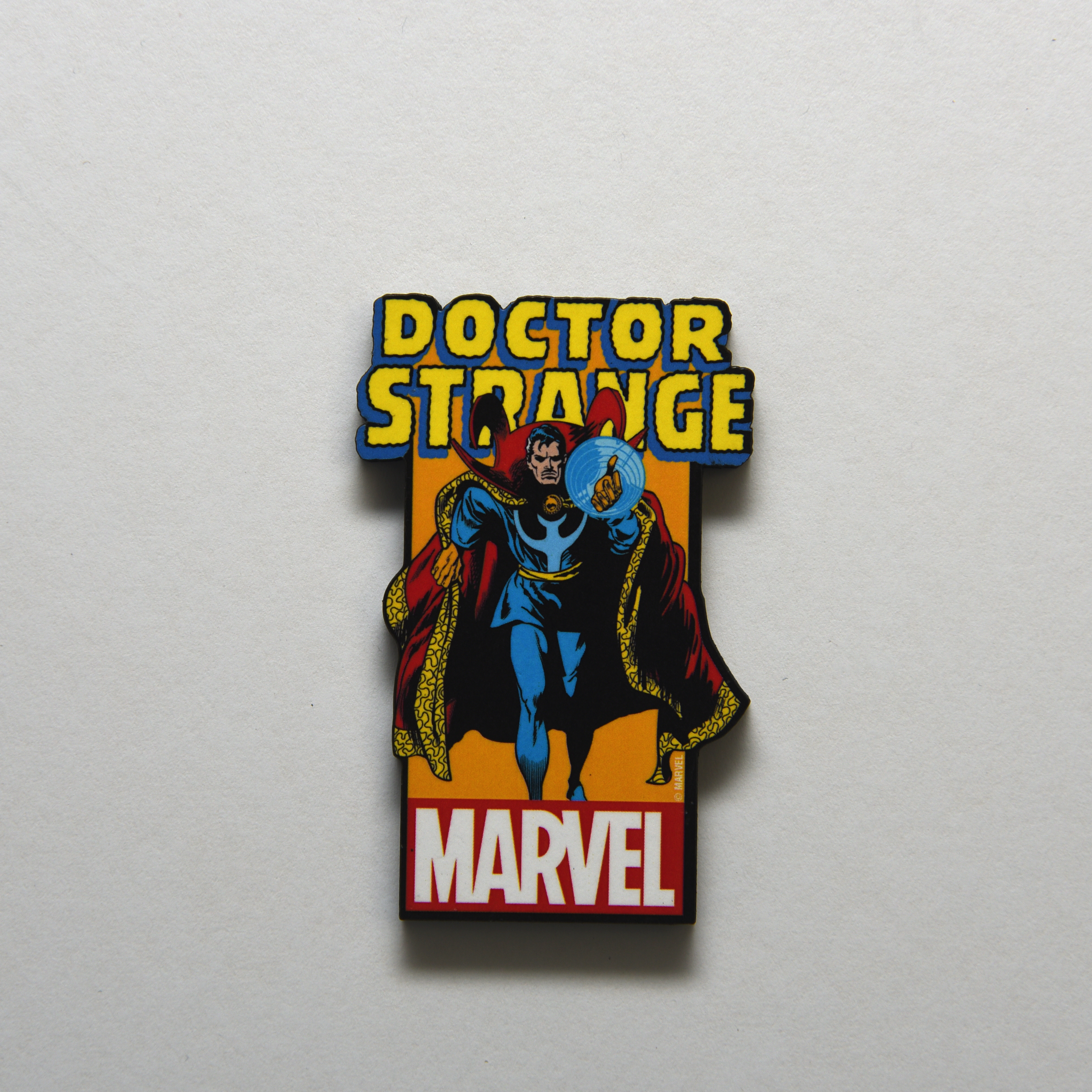 Item: Doctor Strange Magnet Date: 2016 Type: Magnet Size: 2 1/4 x 3 1/2 Company: nrmdist Description: This is a small thick magnet with the image of Doctor Strange. It was purchased through the Diamond comic book distributor and NMR.
