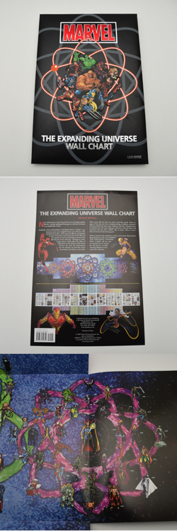 Item: Marvel The Expandable Universe Wall Chart Date: 2009 Type: Wall Chart Size: 12.5 x 18 Company: Universe Publishing Description: This expandable wall chart comes in the form of a large book that unfolds to a 12 foot wide wall chart with various characters grouped by category. Doctor Strange appears in the center of the last section.