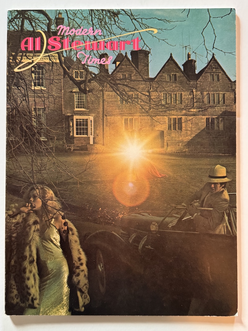 Item: Al Stewart - Modern Times Company: Dick James Music, Inc Date: 1975-00-00 Catalog Number: 18:11:12:0006:C11 Main Category: Music and Recorded Audio Sub Category: Lyric and Chord Songbook Secondary Category: Book Size: 9" x 12" Details: This is the 1975 lyric and cord songbook for the Al Stewart Modern Times album released in the same year. It contains both the sheet music and lyrics for each song on the album. The front cover is the same image as the US release album cover. The original photo was taken on the grounds of Stone House, Rushlake Green in Sussex. The woman was David Gilmours (Pink Floyd) first wife, Ginger Gilmour. The Cord automobile Al Stewart is sitting in belonged to Jimmy Page (Led Zeppelin). Doctor Strange is in the middle of the picture holding a mirror. Hipgnosis did the sleeve design and photography. They are the same group that did Saucerful of Secrets (Pink Floyd) that contained Doctor Strange. They also designed the famous The Dark Side of the Moon album cover along with many other famous covers for other rock bands.