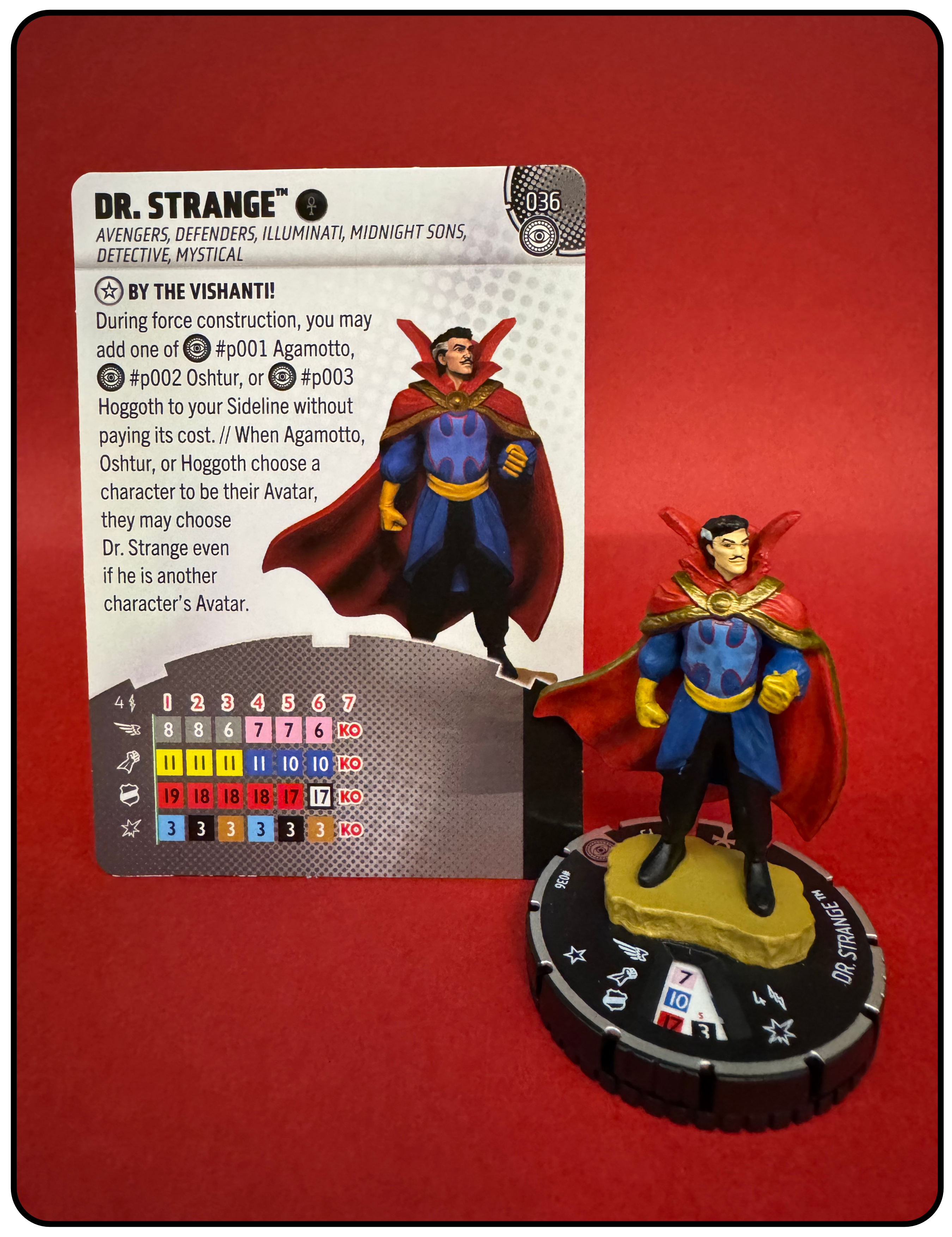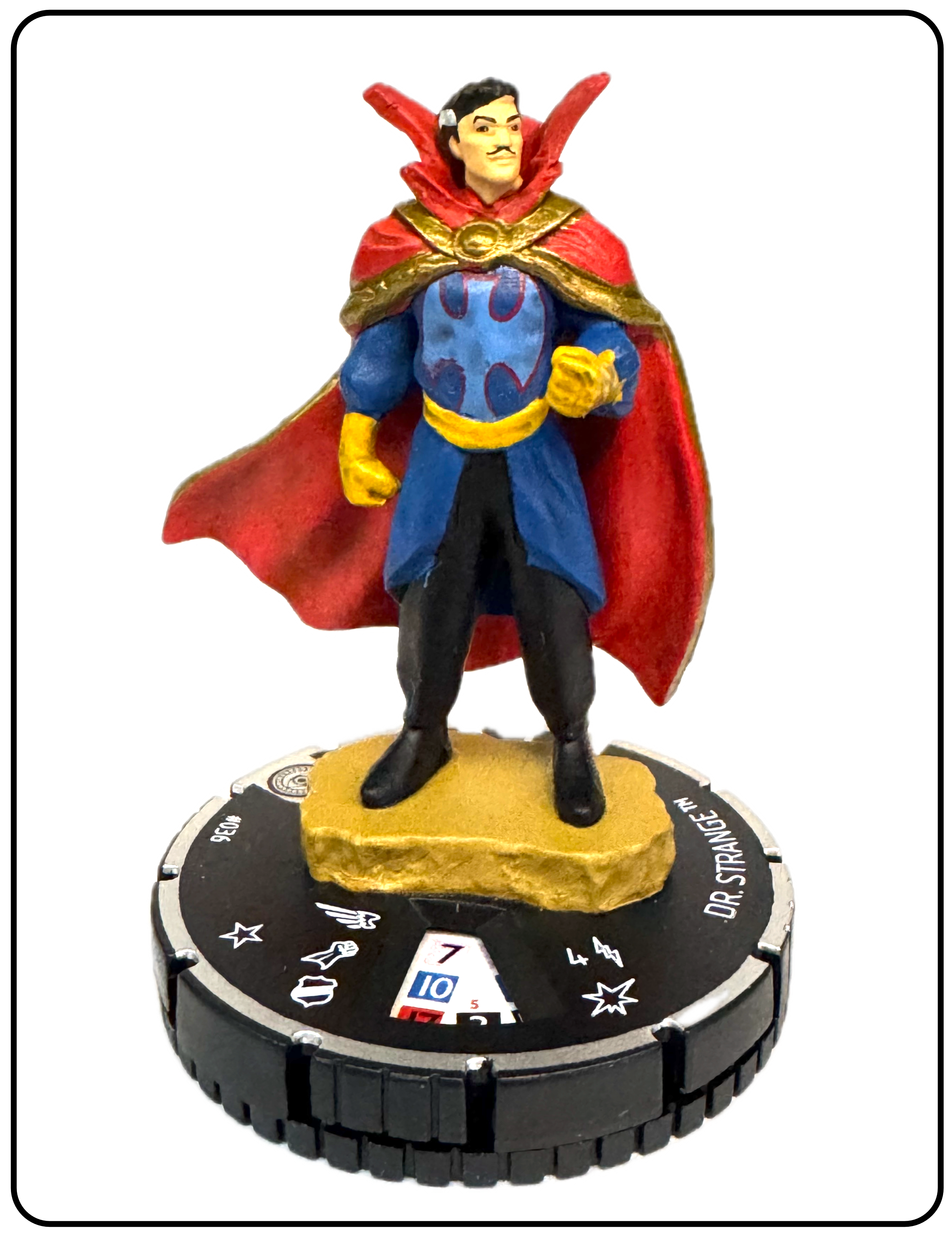 Name: Dr. Strange Number: 036 Rarity: Rare Set Name: Strange Tales Type: Figure & Character Card Year: 2025 Catalog Number: 07:02:00:0002:K10 Main Category: Games Sub Category: HeroClix Secondary Category: None Details: This is a great figure from the 2025 Strange Tales set. Dr. Strange is standing with his fists clenched looking up and to the left on a gold base. It is a great pose. Refer to pictures of the Character Card for stats.