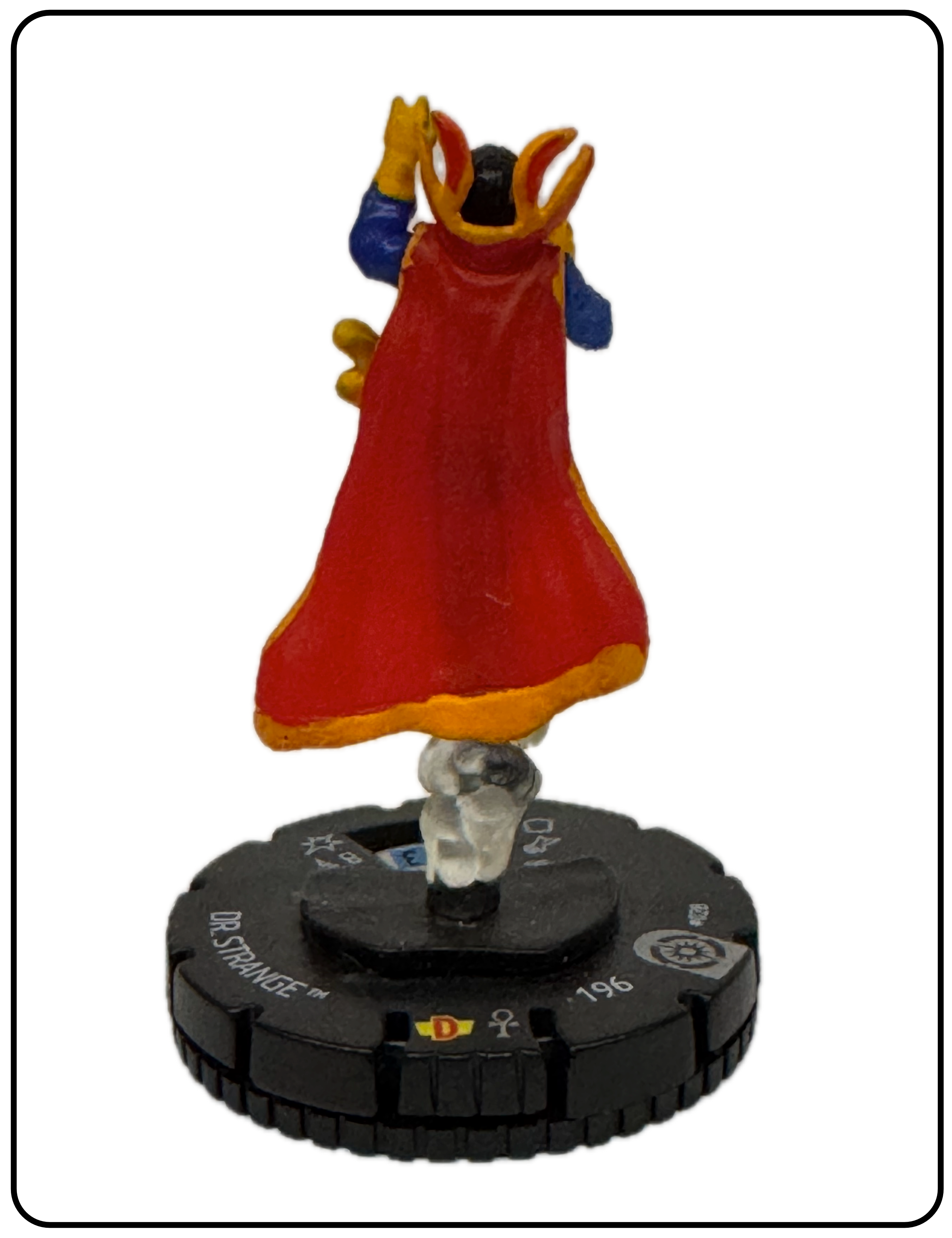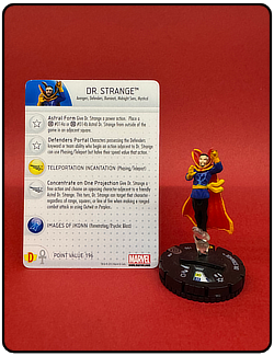 Name: Dr. Strange Number: 028 Rarity: Rare Set Name: Galactic Guardians Type: Figure & Character Card Year: 2012 Catalog Number: 07:02:00:0037:K10 Main Category: Games Sub Category: HeroClix Secondary Category: None Details: This figure is the same sculpt as figure 206 and 014 from the same set. Figure 014 is the astral form of this figure and 206 is the same paint depicting Dr. Strange in his classic comic costume rising above the ground on a clear plastic column of smoke. The other two figures are also in the collection.
