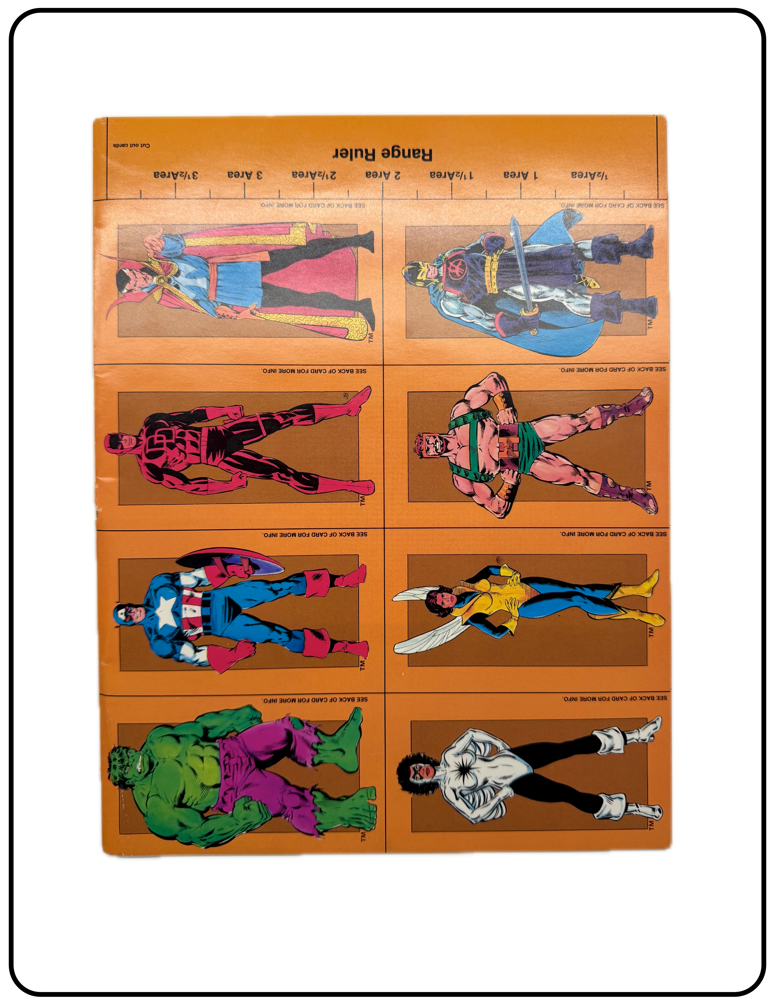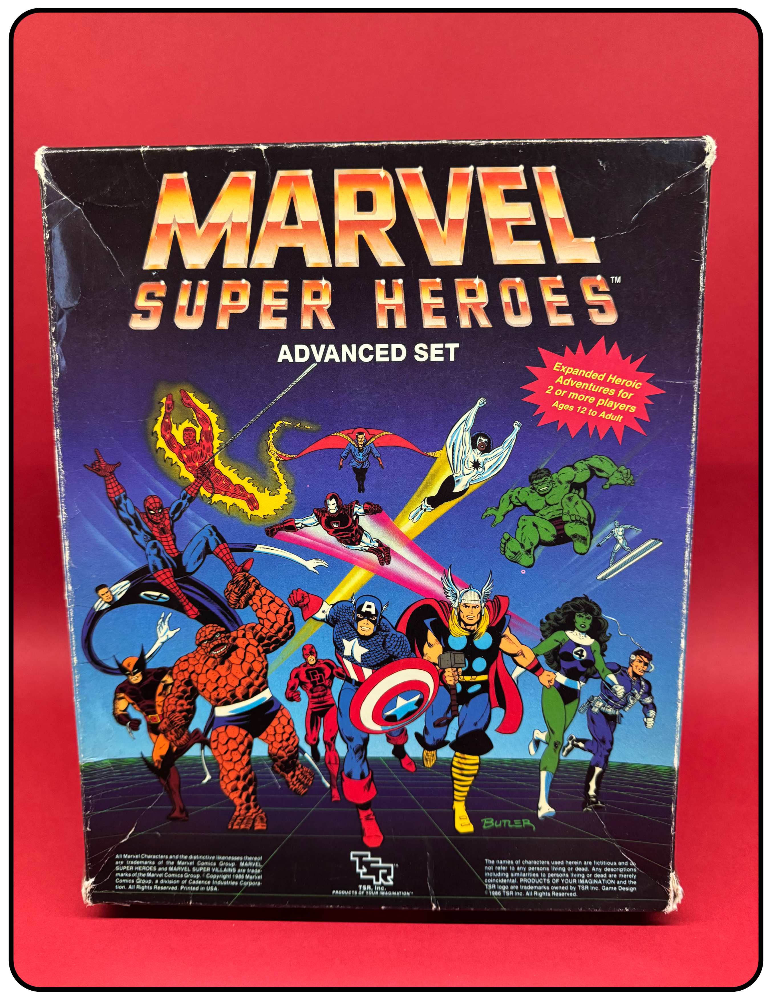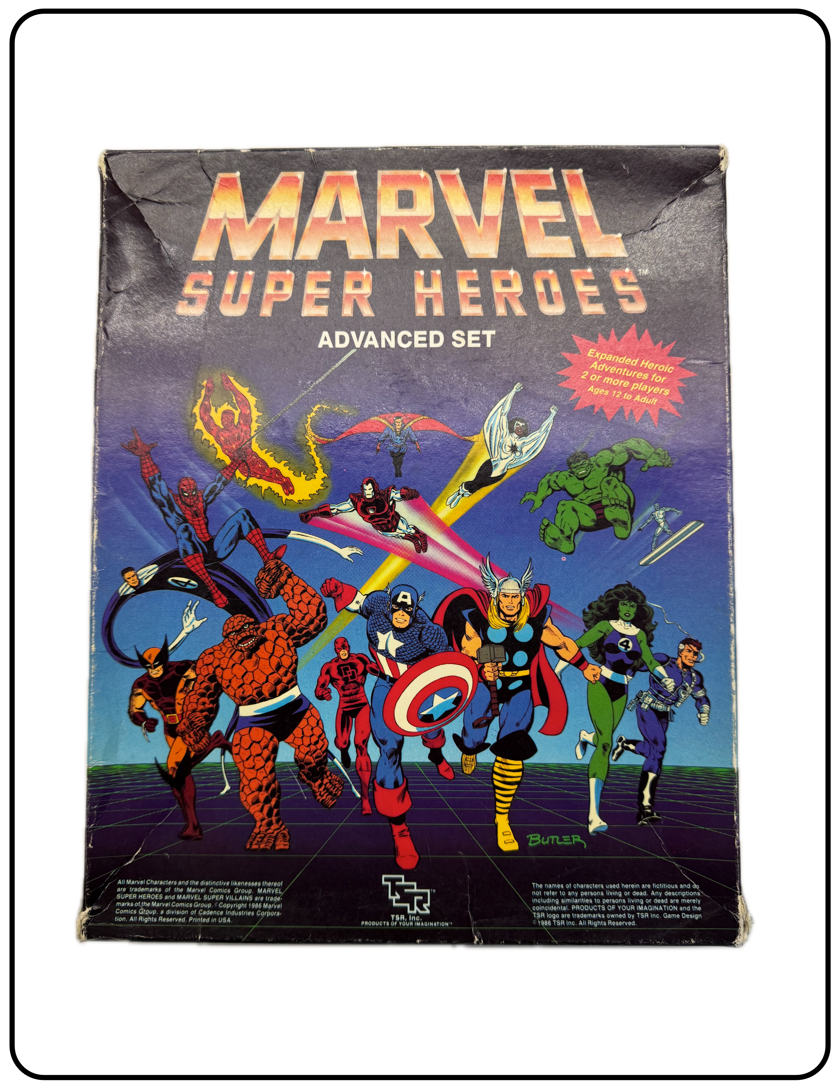 |  | Name: Marvel Super Heroes Advanced Set Company: TSR, Inc. Type: Set Year: 1986 Catalog Number: 07:03:00:0009:C21 Main Category: Games Sub Category: Role-playing Games Secondary Category: None Details: This is the advanced box set for the Marvel Super Heroes Role-playing game. It contains: Players' Book, Judge's Book, character cards, standup character figures and a large foldout section containing maps. The cover art for the books is done by Jeff Butler. He also did art for the interior along with the Marvel bullpen. Dr. Strange has a character card and standup cardboard figure. he is also on the cover of the Players' Book and on interior pages of both books. |