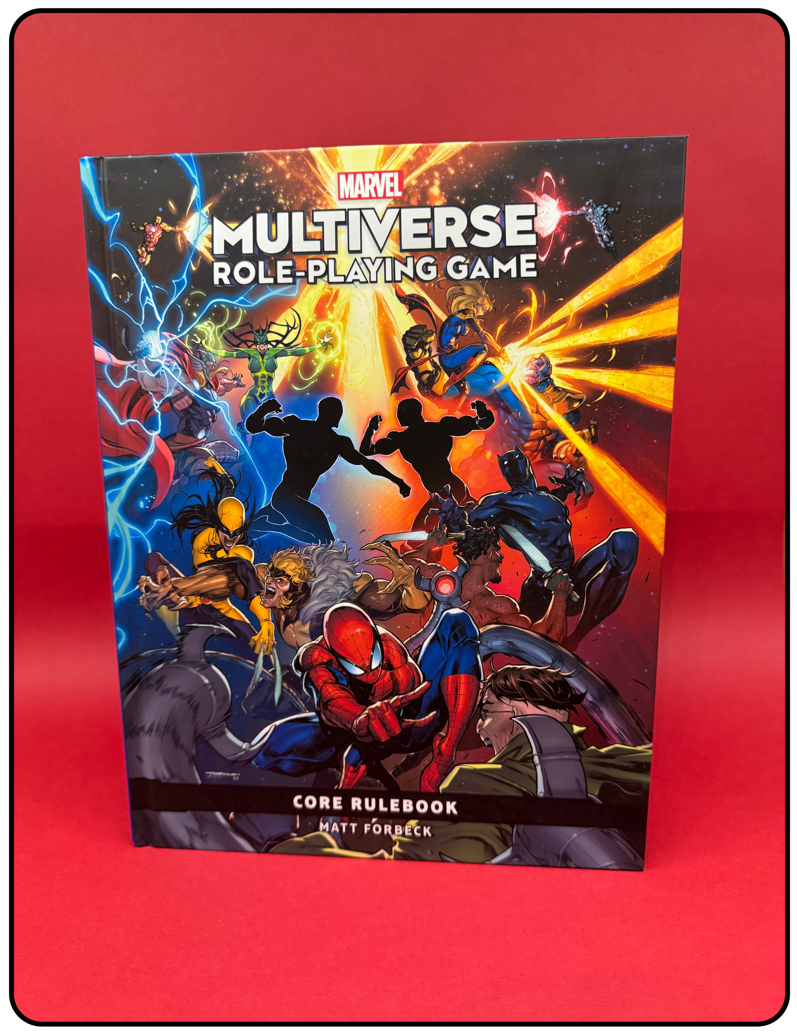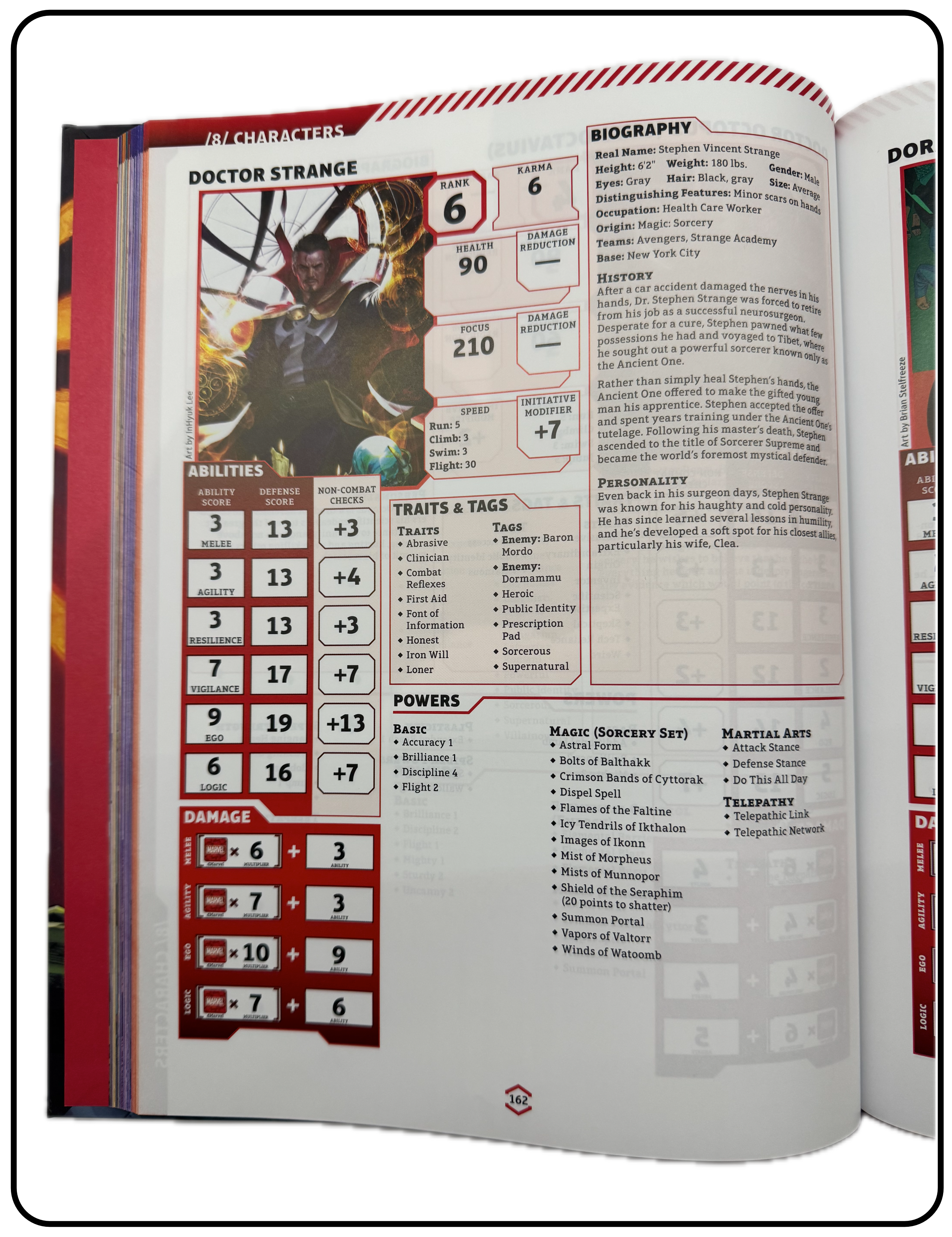 Name: Marvel Multiverse Role-playing Game Core Rulebook Company: Marvel Worldwide, Inc. Type: Rule Book Year: 2023 Catalog Number: 07:03:12:0003:C21 Main Category: Games Sub Category: Role-playing Games Secondary Category: Books Details: This is the 320 page core rulebook by Matt Forebeck for the Marvel Multiverse Role-playing game introduced in 2023. Dr. Strange appears on numerous pages throughout the book. His character sheet is on page 162 and has a rank of 6 (cosmic).