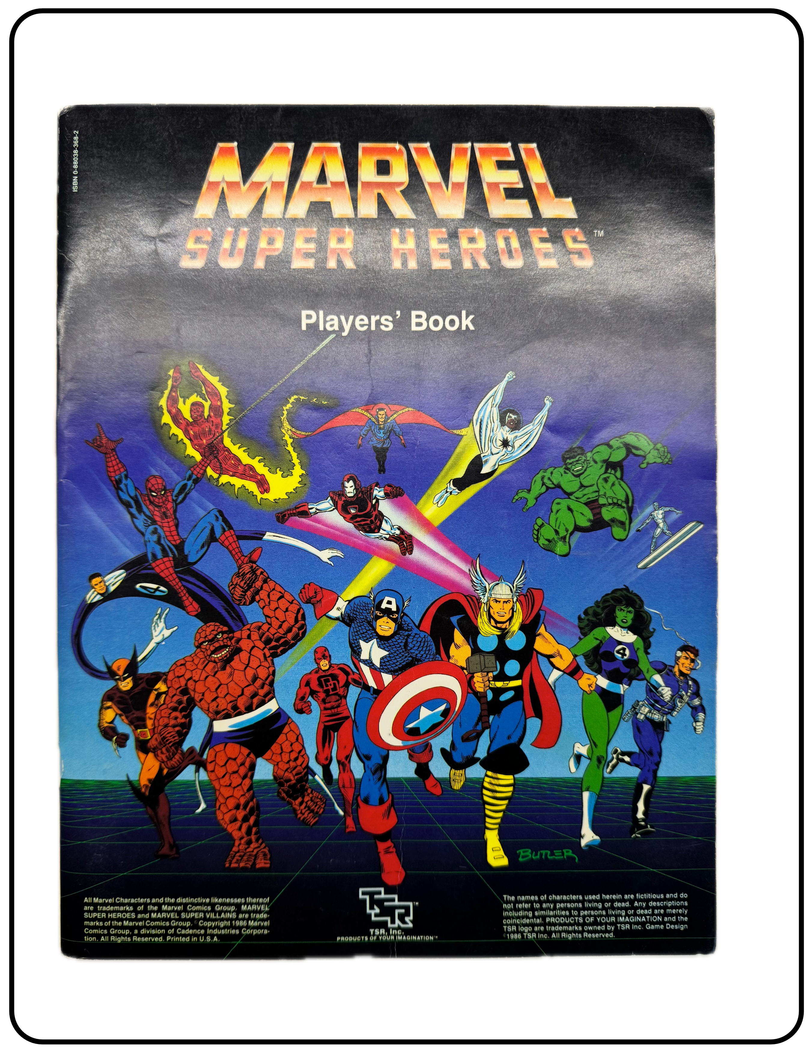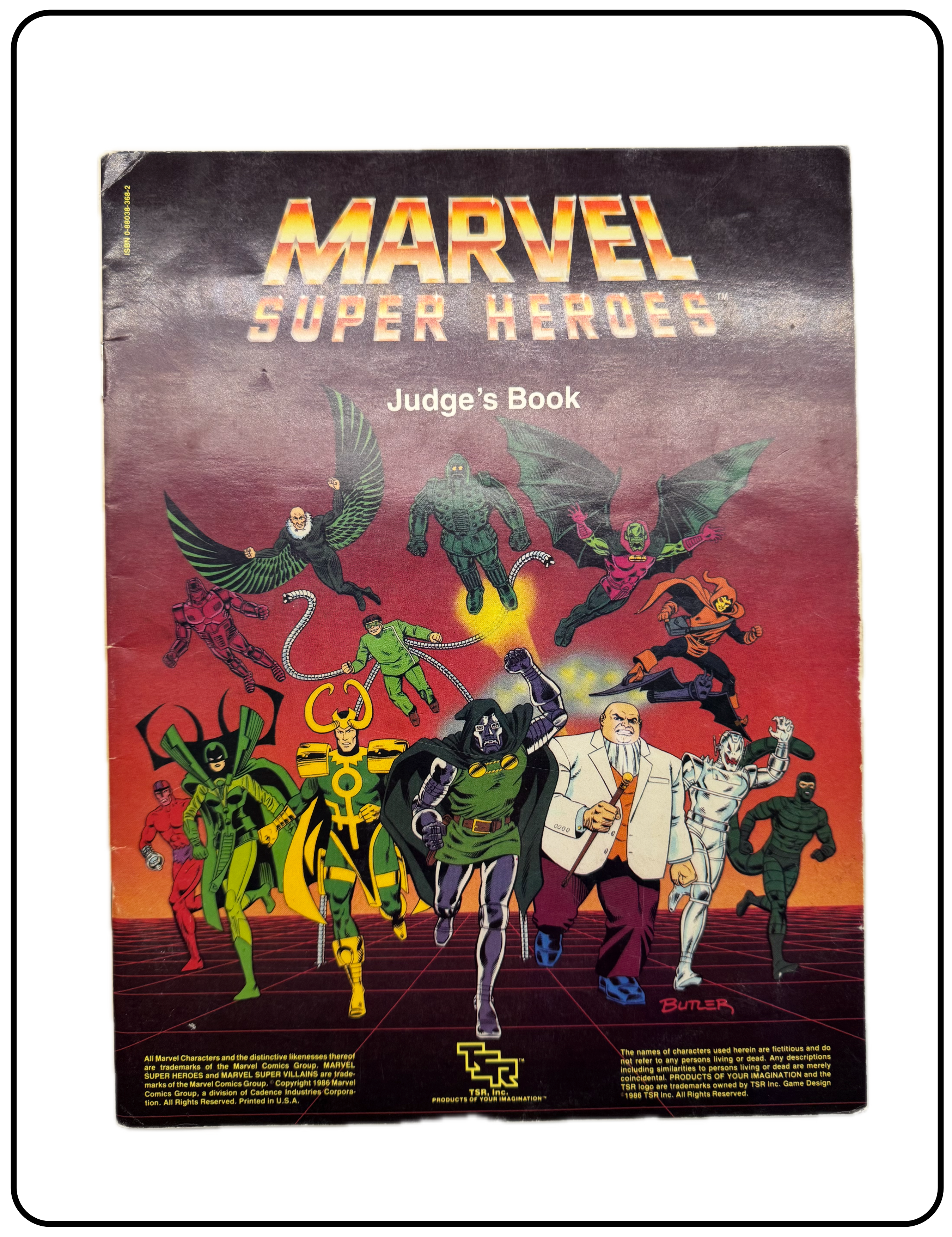|  | Name: Marvel Super Heroes Advanced Set Company: TSR, Inc. Type: Set Year: 1986 Catalog Number: 07:03:00:0009:C21 Main Category: Games Sub Category: Role-playing Games Secondary Category: None Details: This is the advanced box set for the Marvel Super Heroes Role-playing game. It contains: Players' Book, Judge's Book, character cards, standup character figures and a large foldout section containing maps. The cover art for the books is done by Jeff Butler. He also did art for the interior along with the Marvel bullpen. Dr. Strange has a character card and standup cardboard figure. he is also on the cover of the Players' Book and on interior pages of both books. |